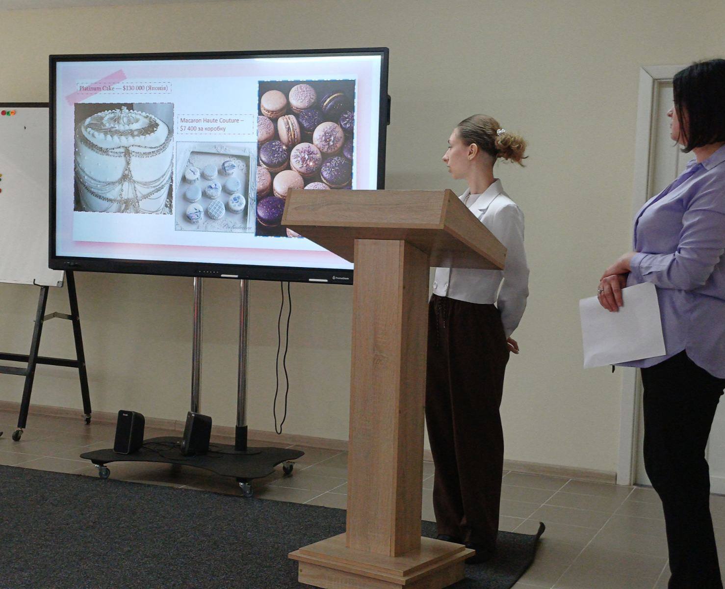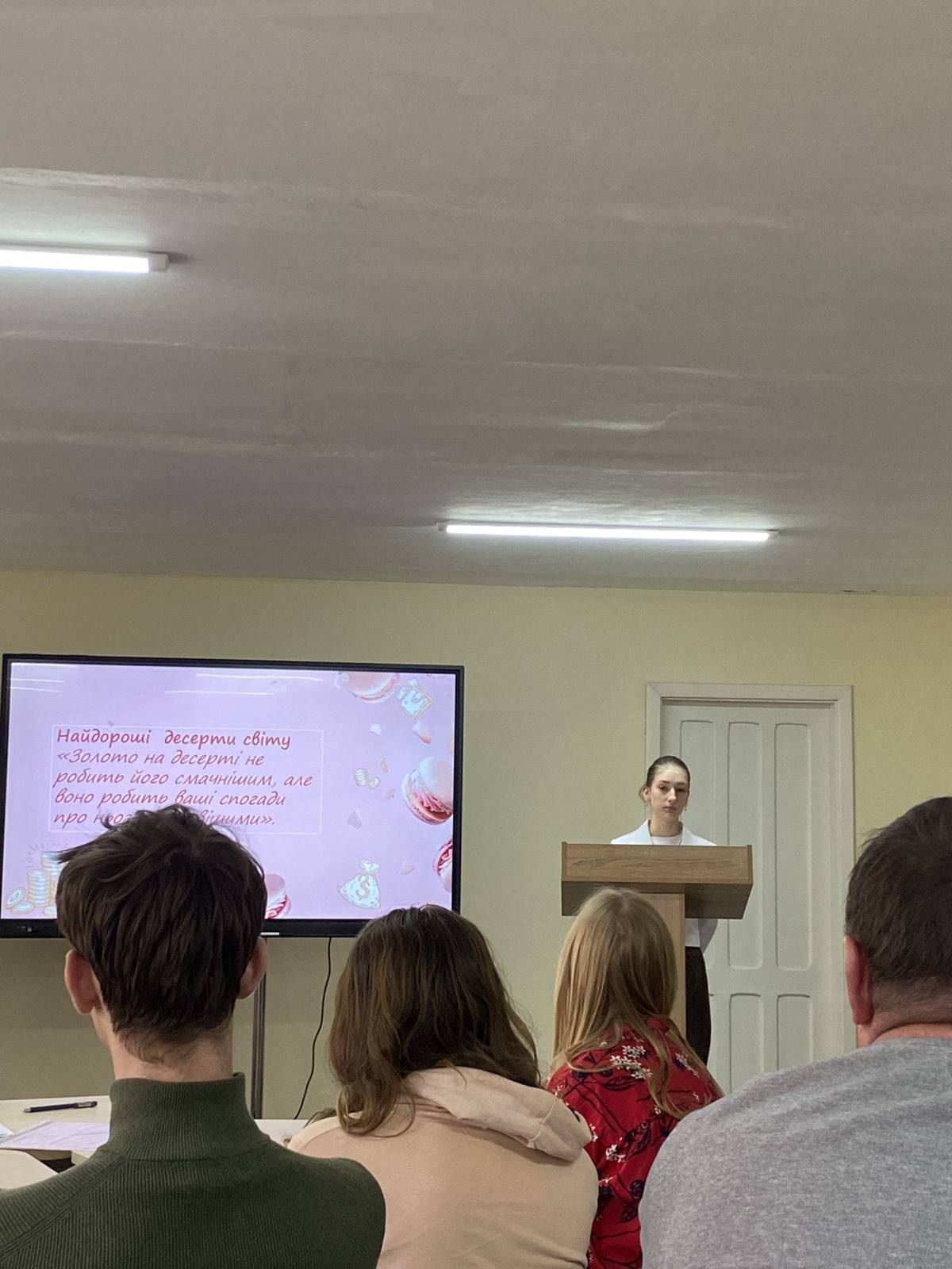 ✨Під час заняття присутні не лише почули, а й побачили захопливі мультимедійні презентації, які ілюстрували ексклюзивні кулінарні шедеври — від страв із трюфелями та золотом до десертів із рідкісними компонентами🍰. Такий формат подачі матеріалу сприяв кращому засвоєнню інформації та викликав жвавий інтерес у студентів.
