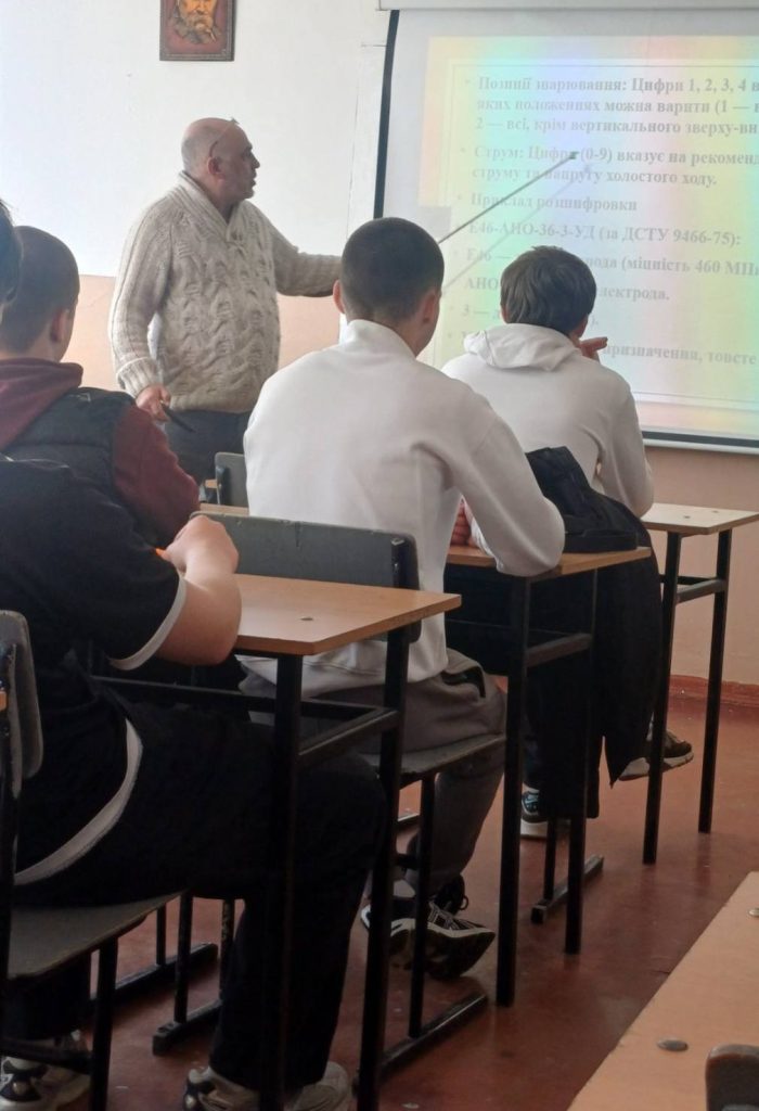 🟡Під час заняття здобувачі освіти ознайомилися з правилами маркування плавких електродів відповідно до вимог ДСТУ, а також міжнародних стандартів ISO. Викладач детально розкрив особливості позначень, що дозволяють визначити призначення, склад та умови використання електродів.